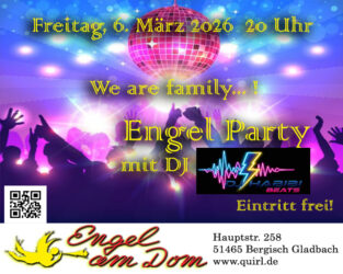 „We are family!“ unter dieser Botschaft lädt das Team vom Engel am Dom zur Dance Party ein. Musikwünsche ausdrücklich erwünscht!!! Eintritt frei! Diesmal mit DJ Habibi Beats Veranstalter: Quirl – Verein zur Förderung kirchlicher und kultureller Arbeit in Bergisch Gladbach e.V. mehr lesen
